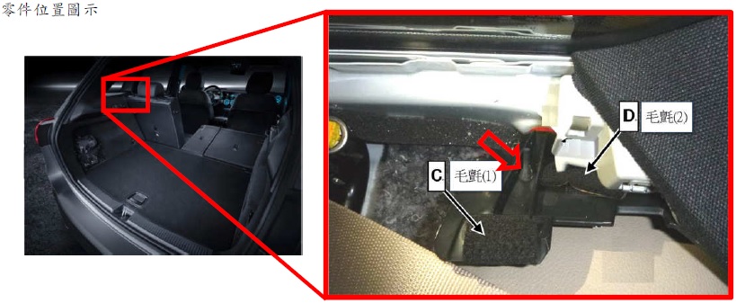 二、經查MERCEDES-BENZ GLC系列車型(製造/進口日期: 2018年 2月 ~ 2018年4月),國內應召回112輛;因裝配廠製程瑕疵。在部分的GLC-Class(X253車系)上,因後座安全帶動態式舌片鎖定機構作用不適當,外側座椅安全帶扣片可能縮回C柱與鈑件中。當安全帶扣片縮回後,可能無法在沒有工具情形下拉出,並導致受影響座位無法使用安全帶,降低乘客安全。車主於接獲車商召回改正之通知後,應儘速回廠為後座左右C柱內安全帶動態式舌片鎖定機構黏貼毛氈。工作時間約需0.4小時。
