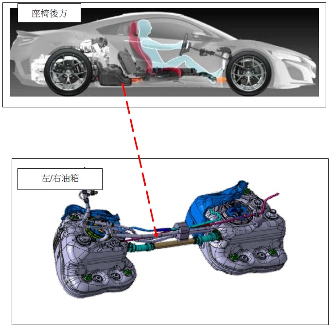 二、經查HONDA NSX車型(製造/進口日期: 2017年 ~ 2017年),國內應召回4輛;因左右油箱連接管的接合面焊接條件設定不恰當。可能因行駛中的震動使該接合面剝離並導致漏油,會聞到強烈的汽油味,如有火源時,可能增加火災的風險。車主於接獲車商召回改正之通知後,應儘速回廠更換油箱。工作時間約需11.3hr。