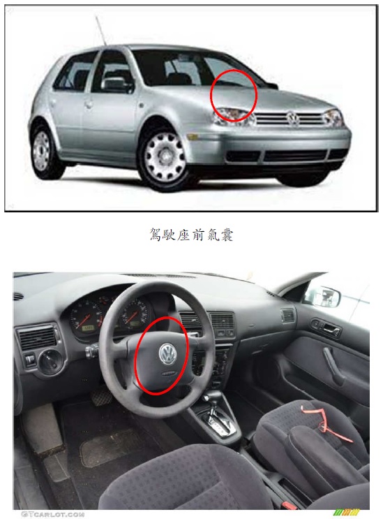 二、經查VOLKSWAGEN GOLF、PASSAT車型(製造/進口日期: 2003年 ~ 2003),國內應召回13輛;因在特定時期內製造的駕駛座前氣囊,氣體產生器在溼度和溫度的影響下導致氣體產生器劣化。如駕駛座前氣囊展開,氣體產生器外殼可能會爆裂。這可能導致小金屬部件從殼體上飛散傷害車輛乘員,恐有安全疑慮。車主於接獲車商召回改正之通知後,應儘速回廠執行駕駛座前氣囊模組更換,工作時間約需1小時。