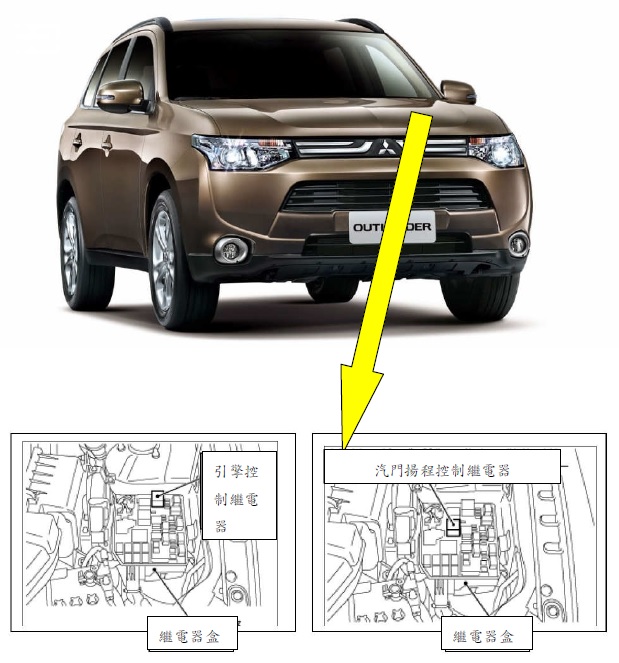 二、經查MITSUBISHI OUTLANDER車型(製造/進口日期: 2015年1月 ~ 2016年9月),國內應召回7869輛;因引擎及汽門揚程控制繼電器內部端子焊接不良,車輛使用過程中,焊接點可能斷開,造成引擎故障燈亮起,最嚴重的情況下,行駛中可能造成引擎熄火或引擎無法啟動,恐有影響行駛安全之虞。車主於接獲車商召回改正之通知後,應儘速回廠更換引擎及汽門揚程控制繼電器,工作時間約需0.3小時。