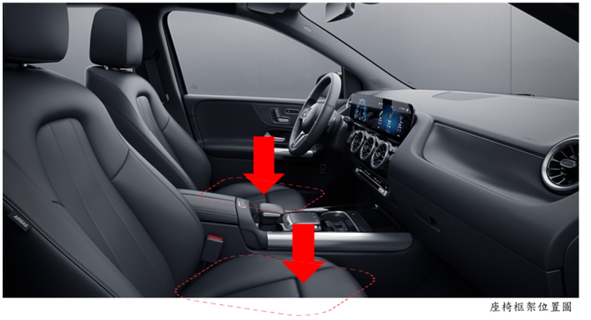 二、經查MERCEDES-BENZ B-Class系列車型(製造/進口日期: 2018年),國內應召回3輛;因零件製造瑕疵。受影響的座椅結構可能會因為車輛碰撞時作用在座椅框架上的撞擊力而失效。可能導致受影響的座椅和乘員在發生碰撞時的位移增加,因此可能增加乘員受傷的風險,恐有影響行車安全。車主於接獲車商召回改正之通知後,應儘速回廠更換駕駛座及右前乘客座座椅框架,工作預計約4小時。