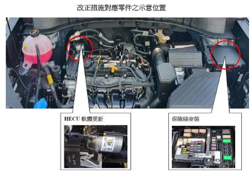 二、經查HYUNDAI TUCSON車型(製造/進口日期: 2015~2021年),國內應召回12,760輛;因剎車液壓電子控制單元(HECU)中可能發生電氣短路。極少數的HECU模組中可能發生電氣短路導致電流過載發熱,造成該模組在極端狀態下,有可能增加引擎室起火的風險,恐有影響行車安全的疑慮。車主於接獲車商召回改正之通知後,應儘速回廠更換保險絲,若為TLD-B(柴油)車型須再更新HECU軟體。工作時間:約0.4時/台。