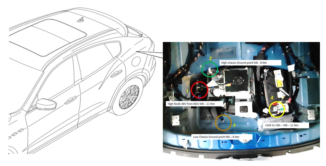 二、經查MASERATI LEVANTE GT HYBRID車型(製造/進口日期: 2021 年),國內應召回53輛;由於48伏特系統的搭鐵點螺帽鎖緊扭力可能未達到Maserati的最高安全規範,進而導致因震動造成螺帽與搭鐵位置鬆脫的潛在缺陷。存在螺帽與搭鐵位置出現電火花並導致線束燒蝕的疑慮,且有影響行車品質並存在安全隱憂。車主於接獲車商召回改正之通知後,應儘速回廠進行檢查並鎖緊48伏特系統的搭鐵點螺帽扭力,作業時間約0.25小時。