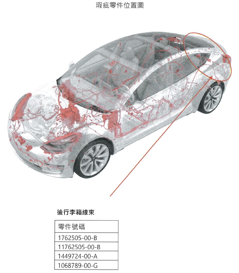 一、交通部接獲台灣特斯拉汽車有限公司依「汽車安全性調查召回改正及監督管理辦法」規定提出汽車安全性召回改正計畫,業經交通部於111/11/28同意該公司提報之TESLA MODEL 3系列車型後行李箱線束瑕疵案召回改正計畫。交通部呼籲購買該等車款之車主,儘速與車商聯繫,以進行改正作業。