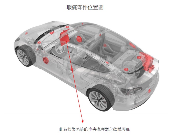 二、經查TESLA MODEL 3系列車型(製造/進口日期: 2022 年),國內應召回7輛;車輛在準備進行直流快速充電或在直流快速充電期間,中央處理器(CPU)可能無法充份地冷卻而高於預期的溫度,此將可能導致中央處理器降低處理速度而導致中央觸控螢幕顯示延遲。在極端狀況下,中央處理器可能重啟並導致螢幕畫面空白,存在可能發生事故的風險。車主於接獲車商召回改正之通知後,可透過遠端軟體更新,為召回範圍內的車輛軟體升級至2022.12.3.3或後續軟體版本,可以緩解中央處理器的升溫及其升溫運作的交互溝通,有效降低正在或準備進行快速充電時的升溫情形,以防止其運行速度減慢或重啟的情形發生。作業時間約需60分鐘。