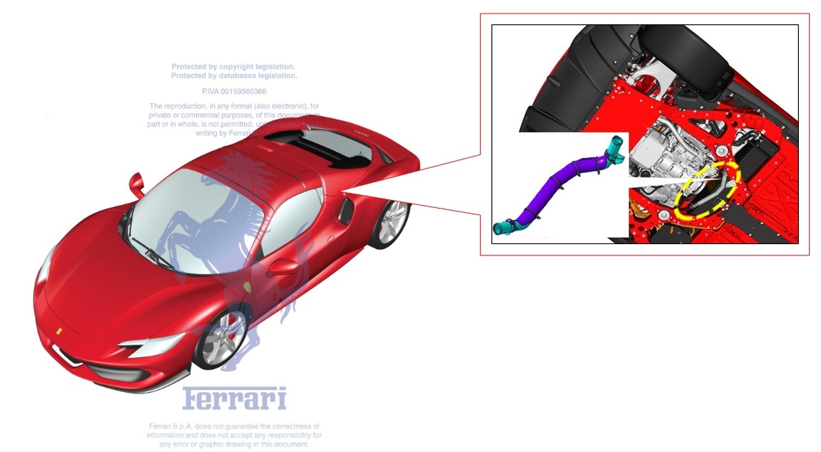 二、經查FERRARI 296 GTB、296 GTS車型(製造/進口日期:2022 ~ 2023年),國內應召回22輛;由於燃油箱連接管未達到Ferrari法拉利最高標準的品質規範。可能造成燃油箱連接管與高壓蓄電池保護蓋(由玻璃纖維和不銹鋼製成)之間的接觸時發生電偶腐蝕,進而造成連接管上形成孔洞導致燃油箱連接管中的燃油洩漏,恐有影響行車安全之虞。車主於接獲車商召回改正之通知後,應儘速回廠進行更換燃油箱連接管,維修時間約1.6小時。