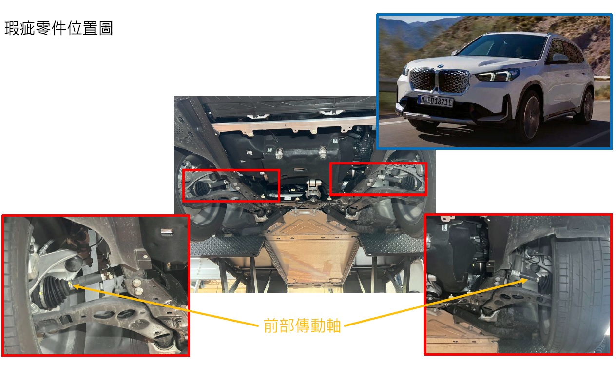 二、經查BMW IX1系列車型(製造/進口日期:2023年),國內應召回83輛;在極少數的情況下前部傳動軸可能從驅動單元中鬆動。可能導致行駛時驅動力損耗並使車輛轉為滑行狀態,恐有影響行車安全之虞。車主於接獲車商召回改正之通知後,應儘速回廠更換改良之前部受影響側傳動軸,工作所需時間預計約3小時/每輛。