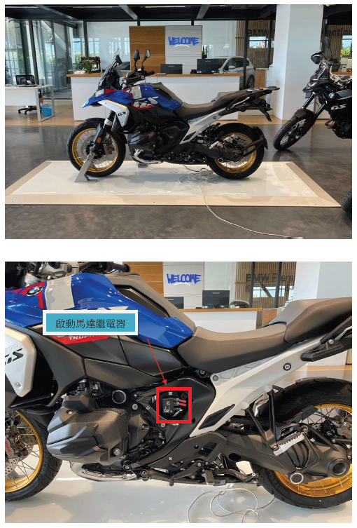 二、經查BMW R 1300 GS車型(製造/進口日期:2023年7月~2024年2月),國內應召回73輛;因啟動馬達繼電器密封不良。造成水氣進入,導致啟動馬達繼電器內部組件鏽蝕,可能會造成繼電器功能失效。在極少數情況下,腐蝕接點間的電流可能導致啟動馬達繼電器發熱而燒焦損壞,恐有影響行車安全。車主於接獲車商召回改正之通知後,應儘速回廠更換啟動馬達繼電器,所需工時30分鐘/每輛。