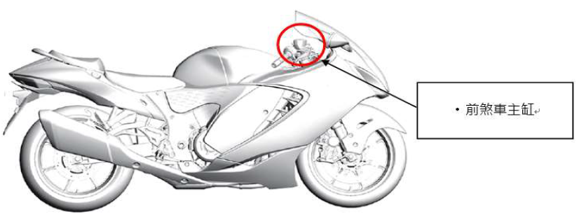 二、經查SUZUKI HAYABUSA車型(製造/進口日期:2021年~2024年),國內應召回117輛;因前煞車主缸蓋隔膜製程瑕疵。造成煞車油路產生堵塞,可能會出現前煞車拉桿遊隙增加的現象。嚴重時會造成煞車距離增加,導致影響行車安全。車主於接獲車商召回改正之通知後,應儘速回廠進行前煞車主缸更換,作業時間約1.5小時。