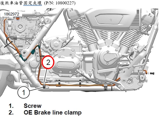 二、經查HARLEY-DAVIDSON CVOTOURING系列車型(製造/進口日期: 2023年4月~2024年3月),國內應召回1輛;因後煞車油管固定夾環未正確安裝。導致極少數車輛後煞車油管與排氣管接觸,引起後煞車系統失效,恐有影響行車安全。車主於接獲車商召回改正之通知後,應儘速回廠執行後煞車油管固定夾環檢查,檢查工時約30分鐘。如需更換後煞車油管固定夾環新品,預計更換工時約45分鐘。