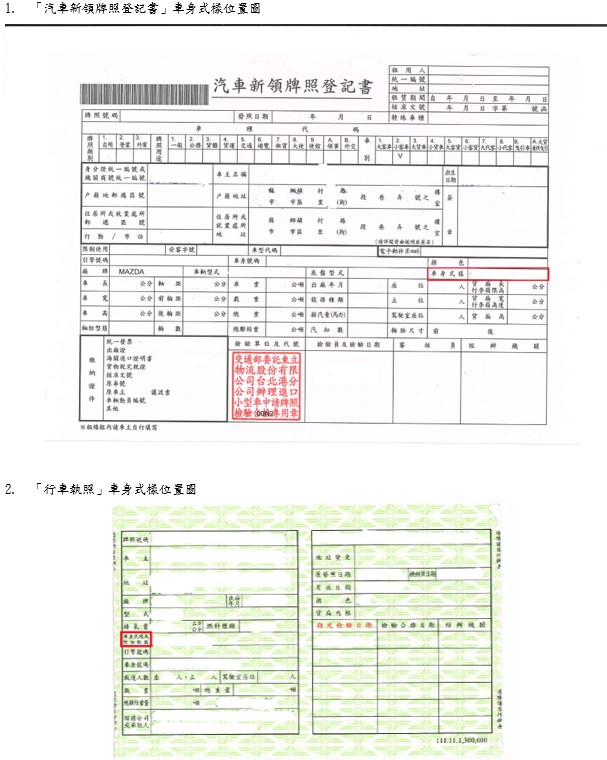 二、經查MAZDA CX-5、CX-9、CX-60、CX-90系列車型(製造/進口日期: 2016年 7月 ~ 2025年 4月),國內應召回55,846輛;因車身式樣分類誤植為「廂式」。正確應為「旅行式」。該項式樣誤植會導致車主於辦理車輛定期檢驗或車籍異動等事項時,因車身式樣不符而無法通過驗車。車主於接獲車商召回改正之通知後,應儘速回廠:1.台灣馬自達汽車股份有限公司預計於2025年8月15日委請中華電信資訊技術分公司修正完成公路局監理資料。2.公司將寄送車主信函並檢附掛號回郵信封,由車主寄回「汽車新領牌照登記書」及「行車執照」至台灣馬自達汽車股份有限公司,以便辦理免費換發服務,更換後再寄還予車主,此項更換作業含郵寄往返時間約需二~三週。3.若不便郵寄,車主也可親自至全台任一監理站申請換發「汽車新領牌照登記書」及「行車執照」,台灣馬自達將負擔其「牌照登記書補發申請規費」及「行車執照補發申請規費」。請於完成換發後,撥冗至台灣馬自達全台任一授權經銷據點,出示換發後的「汽車新領牌照登記書」及「行車執照」且繳費收據即可領取換發規費。