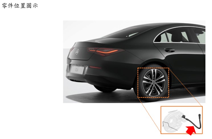 二、經查MERCEDES-BENZ AMG CLA35車型(製造/進口日期: 2024年 2月 ~ 2024年 2月),國內應召回1輛;因後軸煞車軟管的長度可能不符合規格。可能會與周圍部件接觸。隨著時間可能會因磨損而導致煞車油洩漏,在兩個煞車迴路中,其中一個迴路的煞車力會受到影響,可能會增加車輛發生碰撞的風險,有行車安全之虞。車主於接獲車商召回改正之通知後,應儘速回廠檢查左後及右後煞車軟管,檢查時間預計約30分鐘,視檢查結果更換不符合規格的煞車軟管,更換時間預計約2小時。