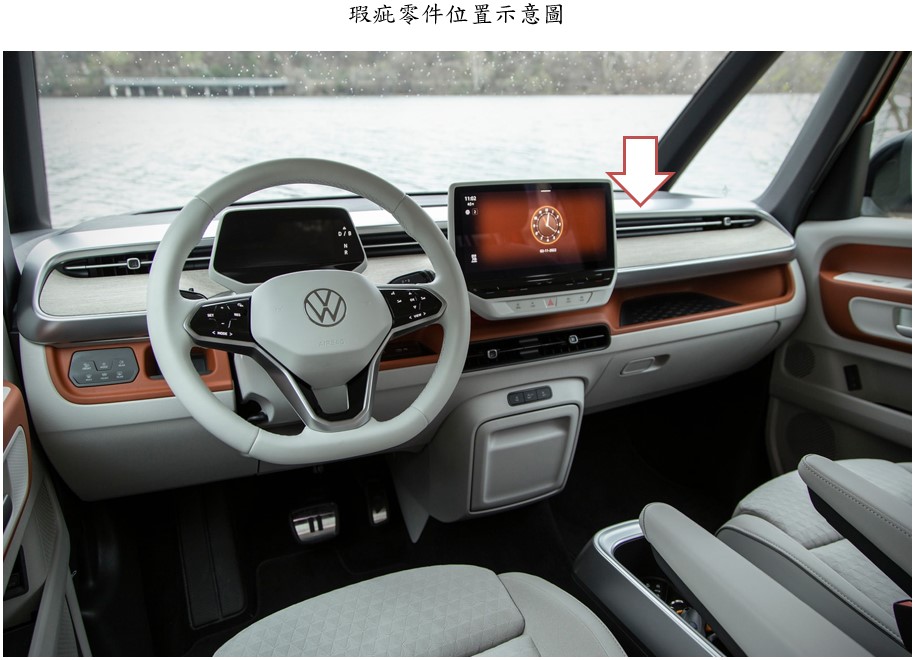 二、經查VOLKSWAGEN ID.BUZZ PRO S系列車型(製造/進口日期: 2025年),國內應召回37輛;因製造問題,前乘客側安全氣囊可能安裝了故障的氣體產生器。安全氣囊可能無法如預期展開且氣體產生器外殼可能會爆裂或鬆脫。當事故發生時安全氣囊彈出,前乘客側安全氣囊的保護效果可能會降低並增加乘客受傷的風險,恐有影響行車安全之疑慮。車主於接獲車商召回改正之通知後,應儘速回廠根據技術資料更換前乘客側安全氣囊。其施工約需1小時。